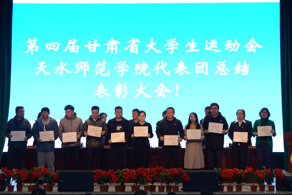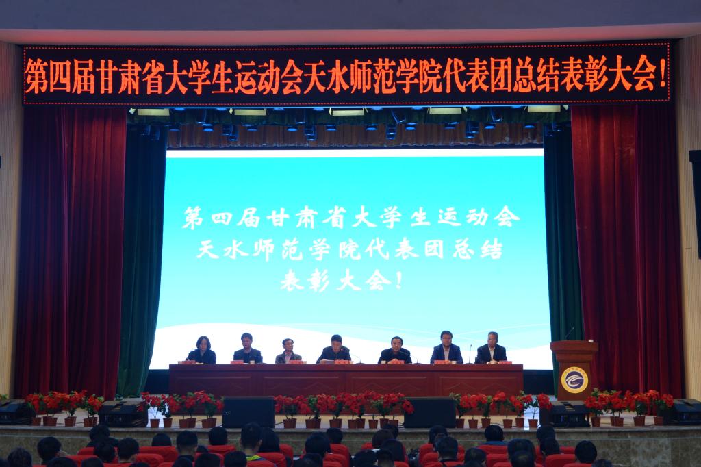 10月14日下午,第四届甘肃省大学生运动会天水师范学院代表团总结表彰大会在学校文化大礼堂召开。学校党委副书记、校长安涛出席会议并为受到表彰的单位和个人进行颁奖。校工会、学生处、团委、二级学院相关负责人,外围买球的app十大平台全体师生和代表团全体运动员、教练员、工作人员共计800余人参加大会。大会由副校长、校体委主任安建平主持。