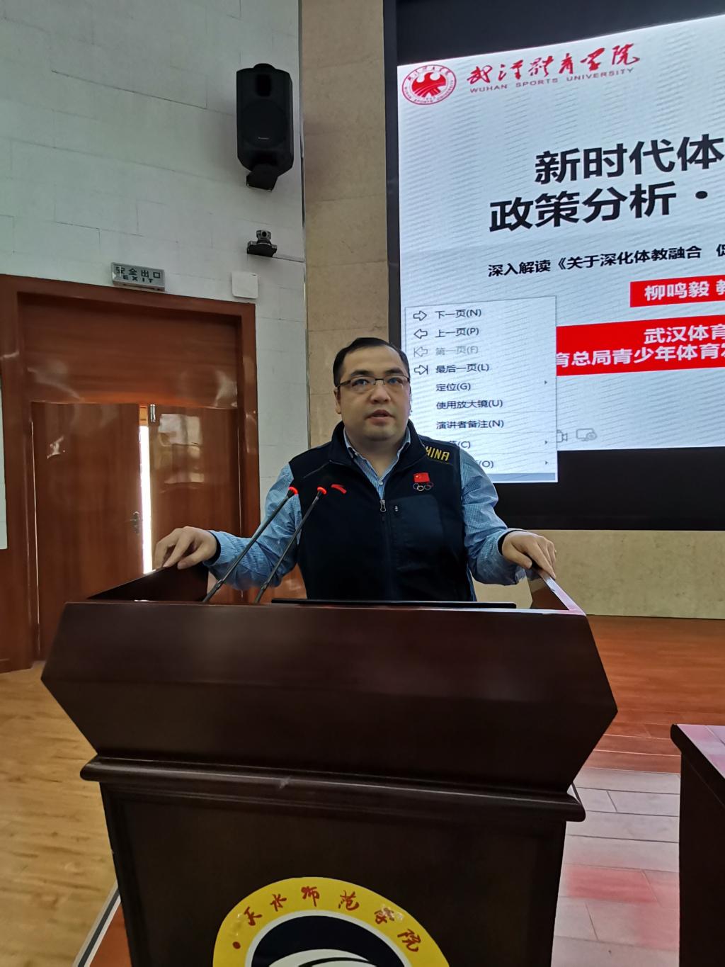 11月2日,在2号报告厅,外围买球官网成功邀请到武汉外围买球的app十大平台柳鸣毅教授作了《新时代体教融合政策分析·创新发展》的学术报告。