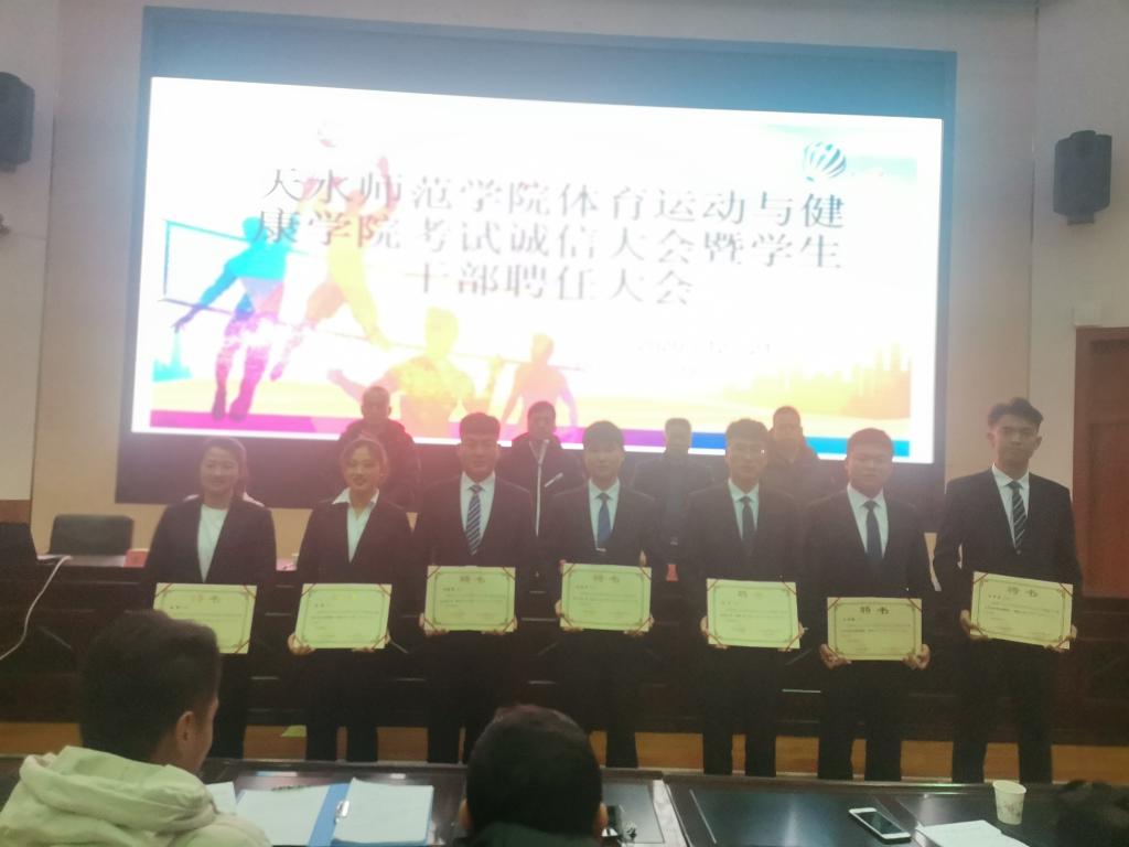 随后进行学生会干部聘任,由学院党总支副书记吴建全宣读学生干部任免文件,学院领导班子为新一届学生干部颁发聘书。