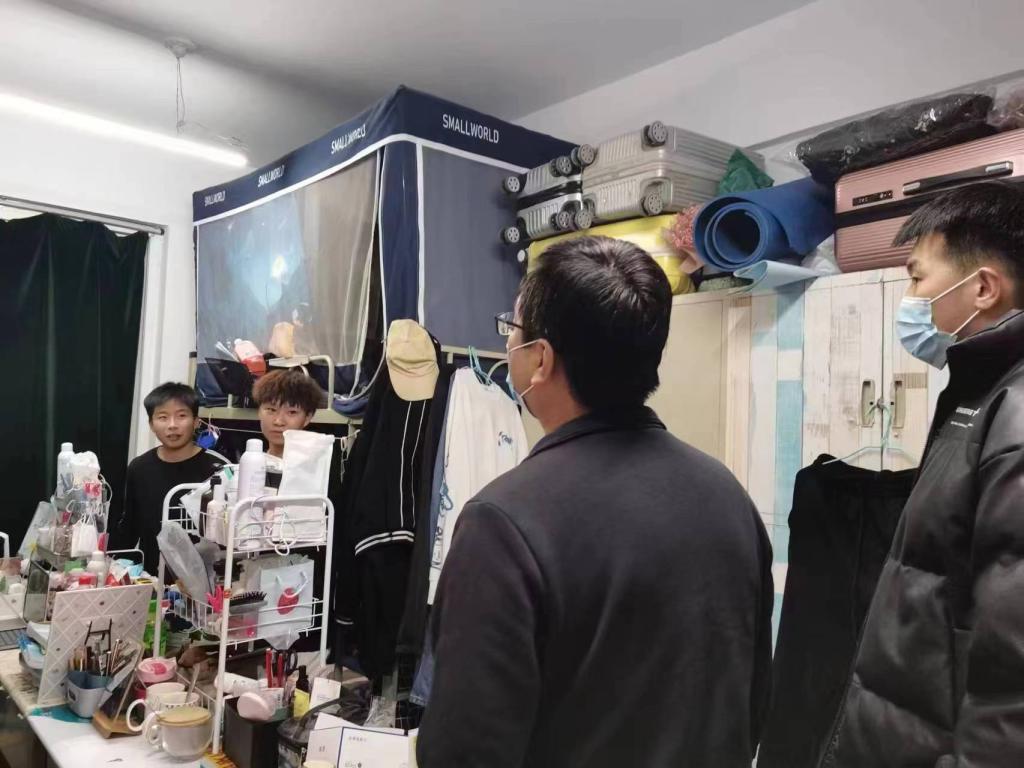 2023年2月25日晚,外围买球的app十大平台班子成员和辅导员深入弘毅公寓、双馨公寓看望2022级学生,为学生送去关心和问候。