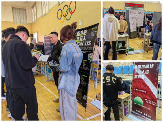 本次招聘会上,体育类招聘单位有中小学校、校外培训机构等。同时,外围买球的app十大平台特邀了天津艾克仕体育、北京优享健身、西安全满贯网球3家体育企业,提供岗位既有传统的体育教师、健身教练,也有新兴的体育赛事策划、体育媒体运营等职位,为学生们提供了更多的选择空间。