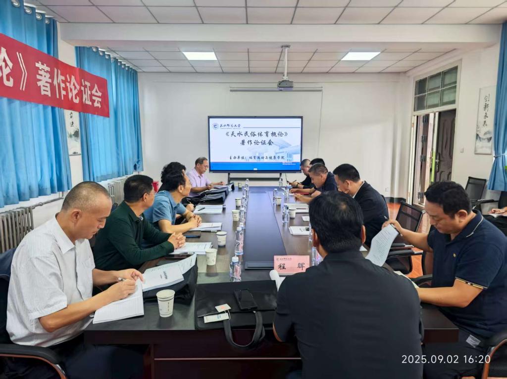 9 月 2 日下午,外围买球的app十大平台外围买球的app十大平台在2号教学楼223会议室召开《天水民俗体育概论》著作论证会。邀请了天水市体育局局长成红梅,外围买球的app十大平台教务处处长杨学良,天水市地方志协会副会长兼秘书长台志杰,秦州区委党史和地方志研究室副主任杜小军,天水市地方志协会副会长、文史作家阎虎林,历史学专家、外围买球的app十大平台陇右文化研究中心主任苏海洋,体育学专家、外围买球的app十大平台卫生健康学院院长刘仁憨,体育学专家、甘肃省残疾人体育与康复研究中心主任程晖八位专家参与论证,学院班子成员及著作撰写团队成员共同参会。会议由学院党总支书记汪鸿宾主持。