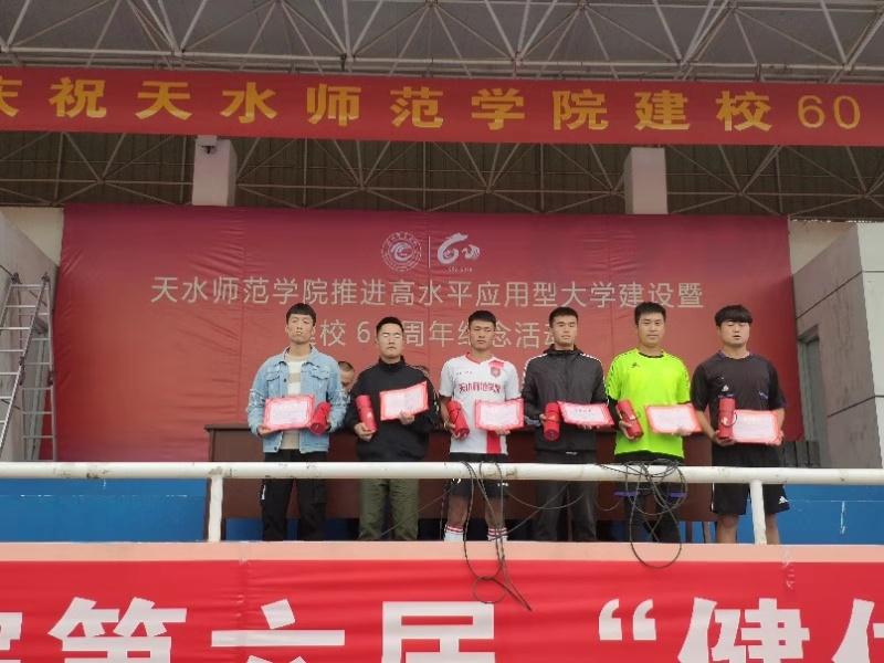 10月11日下午,天水师范学院第六届“健体杯”足球赛在学校东田径场圆满落幕。学校副校长、校体委主任安建平出席闭幕式并为获奖单位颁奖。
