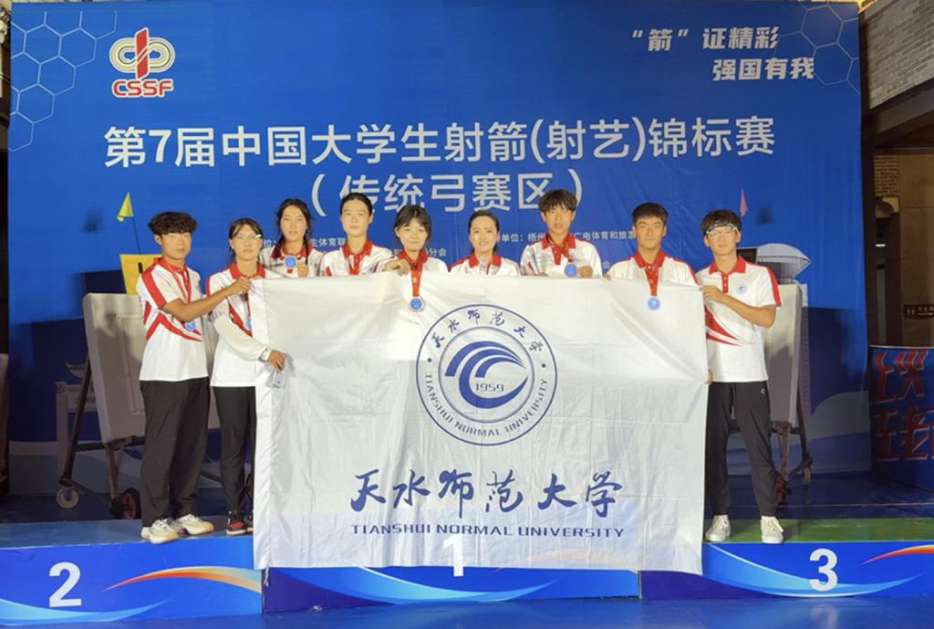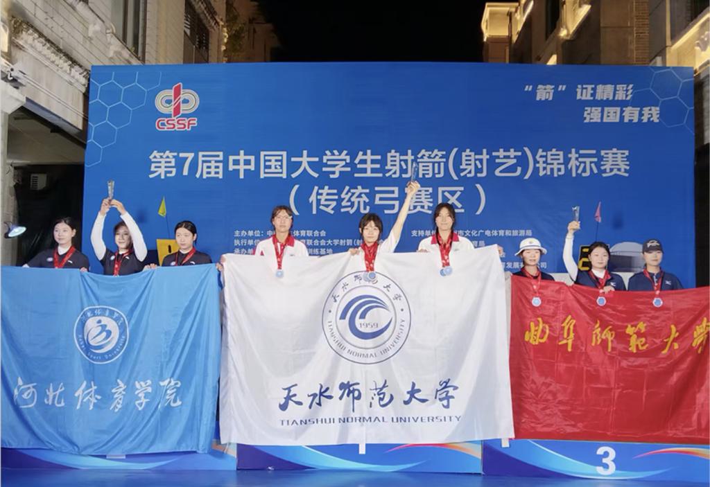 我校射箭队自2025年5月组建以来,仅用两个月便以黑马之姿崭露头角。队员们凭借不懈的刻苦训练与顽强的拼搏精神,一路突破强敌。此次优异成绩的取得,不仅是团队实力的见证,更以优异成绩为学校成功更名大学献上了一份厚礼。