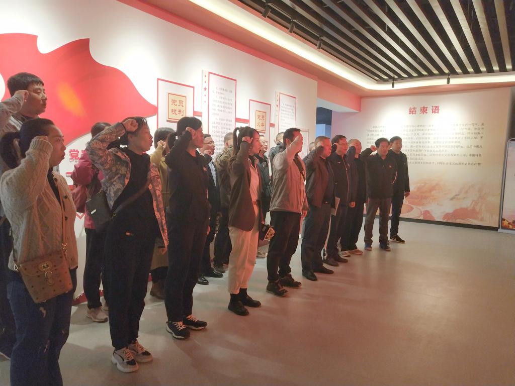 参观结束前,由教工一支部书记蔡中带领师生党员重温了入党誓词。