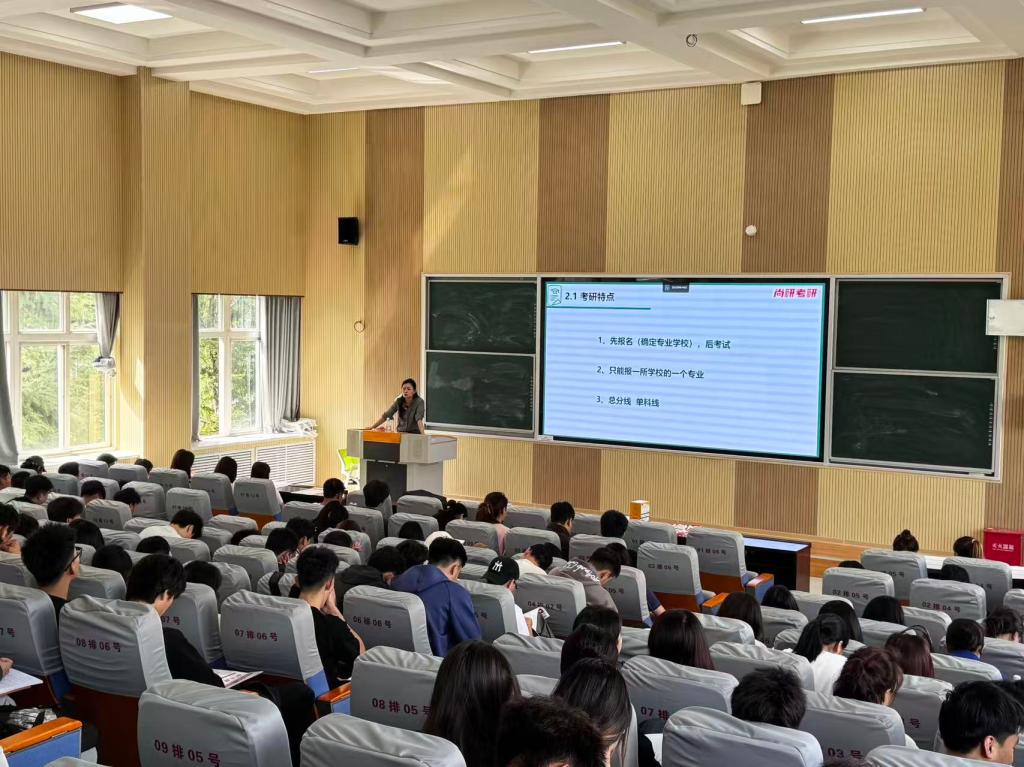 为帮助外围买球官网学生深入了解考研动态、科学规划备考方案,2025年8月31日下午3:00,外围买球的app十大平台在2号教学楼222教室成功举办考研英语专题讲座。本次活动邀请尚研考研吴妮老师担任主讲,面向2022级毕业班全体学生及2023级、2024级有考研意向的部分同学,近两百名学生参加。