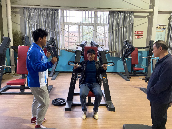 在残疾人体育运动与康复实践授课中:魏玉琴老师携7名学生围绕创编的《残疾人拉力带健身操舞》和《残疾人全身健身操舞》展开教学,重点通过借助拉力带的辅助作用,使残疾人的肩部、颈部、腰部起到良好的运动康复训练;而全身健身操舞则由下肢的34步组成,这对残疾人的全身活动起到了重要作用。陈玮老师选用自主创编的《轮椅健身操舞》,隶属徒手类健身项目,使残疾人在音乐伴奏下,融入多种时尚舞蹈元素为一体的有氧运动,重点对残疾人头、颈、肩、胸及腰等5部位的运动康复练习起到促进作用。段文义教授则通过外围买球官网健身房内残疾人体育运动与康复训练的专业性器械设备,进行悉心的指导和动作演示,这对满足残疾人业余时间内的体育健身、机能恢复、伤残康复训练提供指导与帮助。