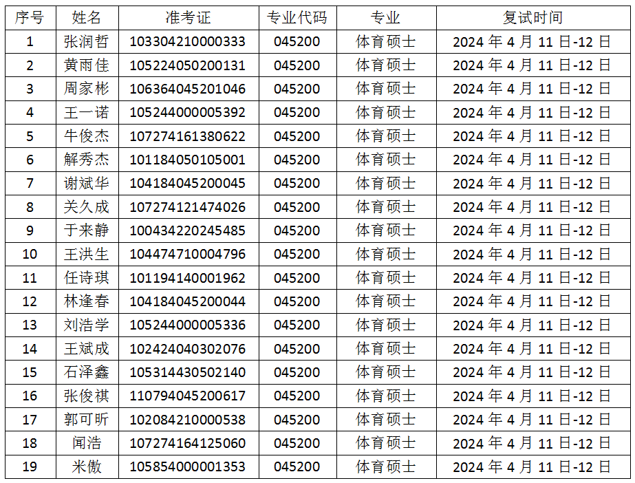 根据天水师范学院硕士研究生招生复试录取工作管理相关规定,经学院研究生招生工作领导小组会议审议,现将外围买球官网2024年体育硕士调剂复试考生名单进行公示,如有意见和问题,可在公示之日起七日内,向天水师范学院外围买球的app十大平台办公室反映,联系电话:09388367713,具体名单如下: