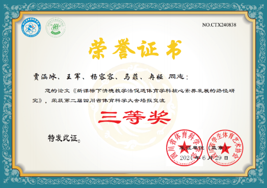 本次大会共收到全国31个省市自治区、直辖市的作者投稿1758 篇,被大会择优收录论文859篇,经过专家评委的评定,外围买球官网2023级研究生贾涵冰同学的论文录用为大会墙报交流,并获得三等奖。